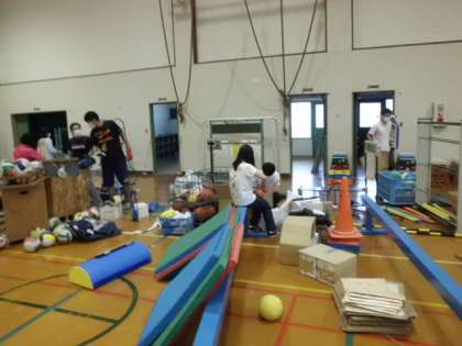 図書室の本や体育倉庫などを全員で整備しました。