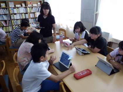 高学年の子どもたちは,タブレットPCを使って学習しています。