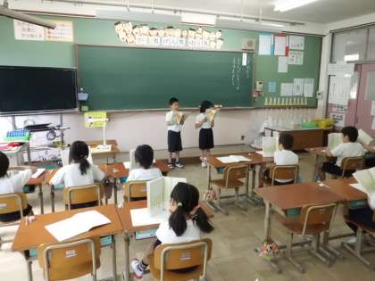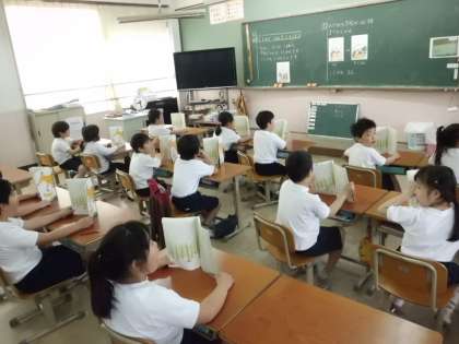 しっかりと本を持って,声を合わせて,気持ちを込めて読んでいます。