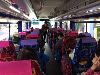 無事に出発式を終え名古屋に向けてバスで移動中です。車内には元気な子どもたちの声が聞こえてきます。