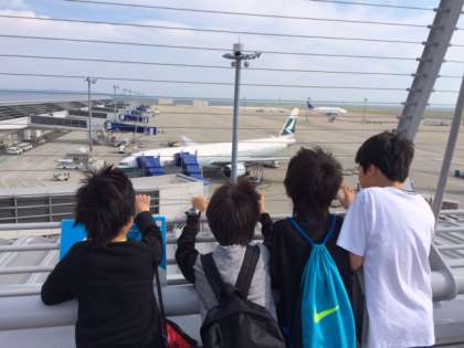 本日最後の見学地セントレア(中部国際)空港に到着しました。飛行機の離発着を見て興奮気味の子どもたちです。