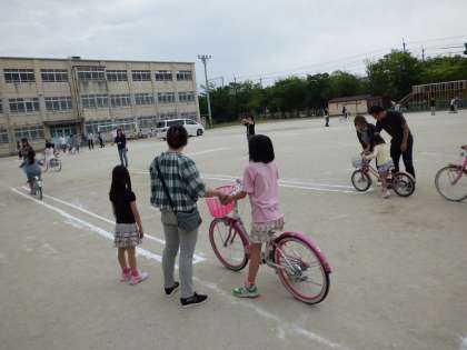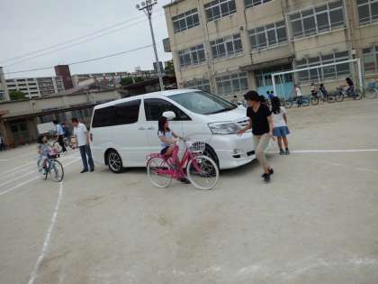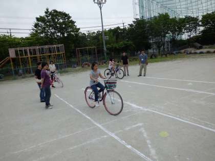 正しい交差点での曲がり方や安定した乗り方など,実技を通して練習をします。