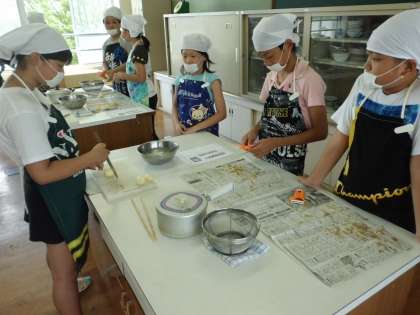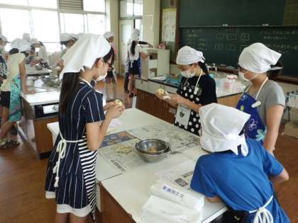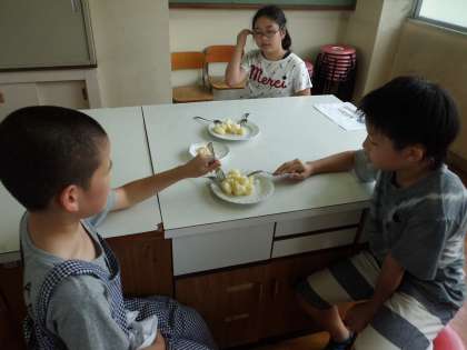 先日,理科の実験で使ったジャガイモを収穫し,粉ふきいもを作りました。慣れた手つきで皮をむき,包丁で適度な大きさに切り,ゆがいていました。新ジャガイモはほくほくしてとてもおいしかったようです。