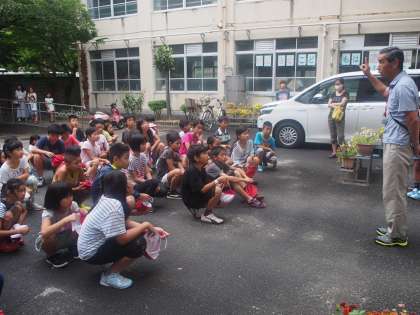 天気はあいにくの雨模様ですが,子どもたちはテンション高く,元気に出発しました。