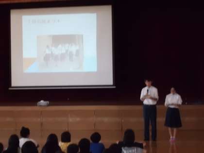 体験授業の後は,生徒会からの学校紹介です。