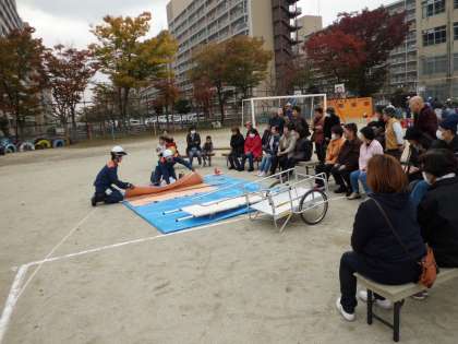 消防署の方々にも来ていただいて,消火器の使い方や応急手当の仕方などの訓練を実施しました。
