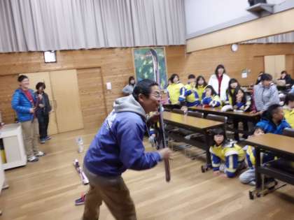 明日の活動に向けて、山の家の方にスキーの基本を教えてもらいました。
