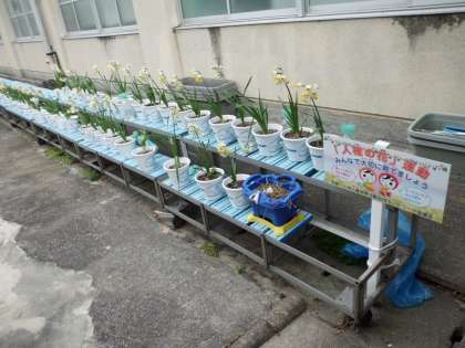 子どもたちが心をこめて育てたスイセンは,地域の人や施設に寄付されます。