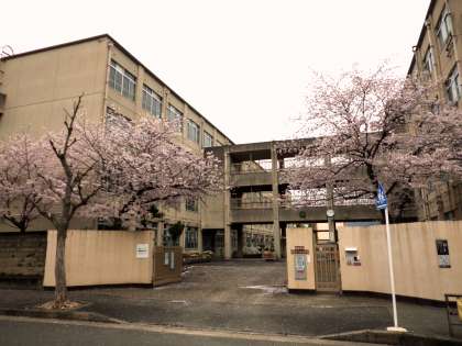 校門の桜が満開になっています。