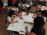 図工で,「お話の絵」の学習に取り組んでいます。 下書きでは,思いついた場面を勢い...