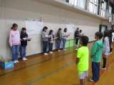 木曜の5年生とのプレポスターセッションに向けて,体育館で初めて発表の練習をしま...