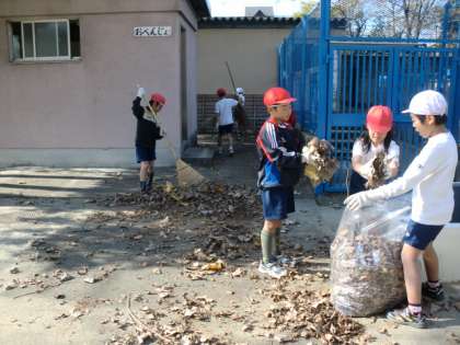 今年はポプラが剪定されたとはいうものの,運動場の周りは落ち葉がいっぱい。自分たちの学校は自分たちの手できれいにしようということで,低・中・高学年で落ち葉拾いをしました。3年生は,10日(金)にプールの横から体育倉庫あたりまでの落ち葉を拾いました。見かけはたいしたことないと思っても,拾ってみるとゴミ袋がいくつもいっぱいになりました。だれも手を抜かずに時間いっぱいがんばる姿に,感心しました。