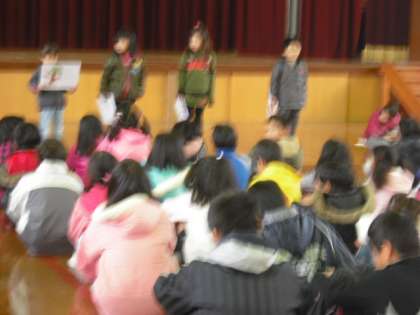 「学んだことや体験したこと、感動した経験などを全校の皆さんに聞いてもらう発表会」として、「二の北タイム」を実施していますが、1月は1年生が発表。