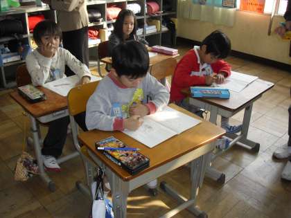 今日は,1年生の研究授業でした。「しらせたいな,みせたいな」の学習で,子ども達は,自分の知らせたいものについて,書き,友達に伝えていました。どの子も一生懸命に考え,手を挙げ,発言し,がんばっていました。