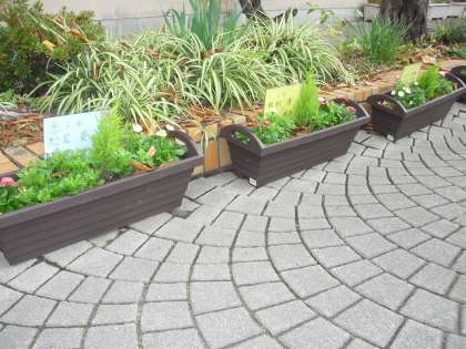 花育活動で植えたプランターには,植えた子どもの名札を立て,自分で水やりなど行い育てています。