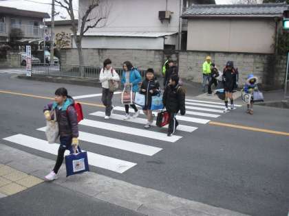 新しい年は,保護者の方々にたくさん校門に来ていただき,「声かけ運動」から始まりました。子ども達はいつものように早くから登校し,「ランちゃん」から新しい年の学校生活をスタートさせました。