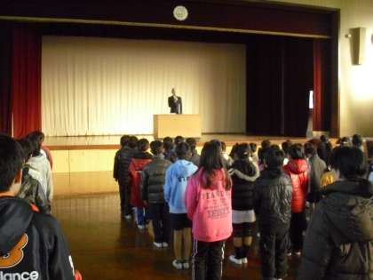 しっかりと校長先生のお話を聞きました。「一年の計は元旦にあり」今日お家に帰って,今年の目標を考えている子どもも多いのではないでしょうか。ちょっと聞き出してみたり,一緒に考えていただいたり,目標を子どもと共有できるといいですね。