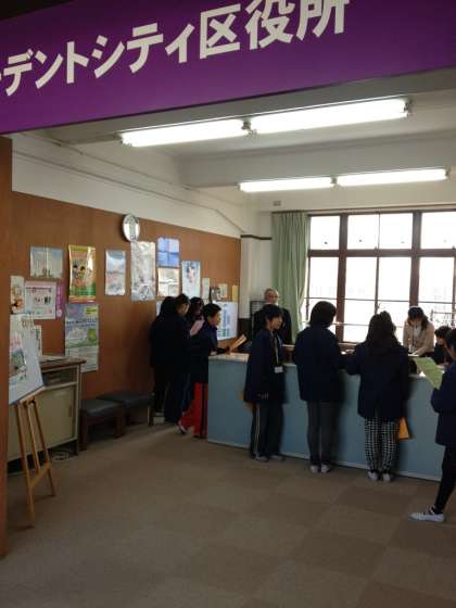 全体でのオリエンテーションの後,各ブースで仕事の進め方の説明を聞いています。