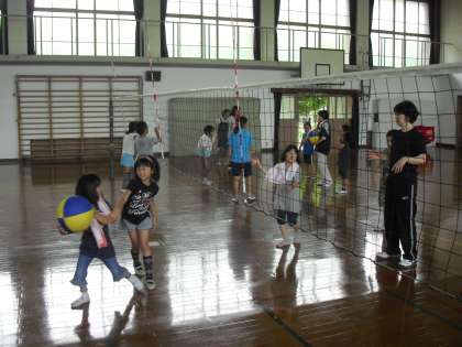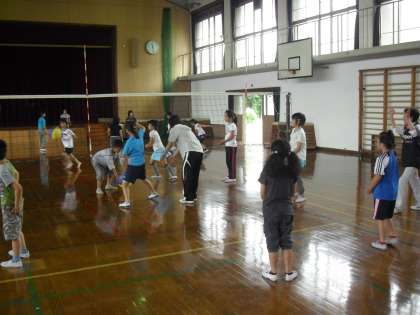 学習のあと,ソフトバレーボール教室がありました。体育振興会のバレーボールサークルの方の指導により,子ども達は汗をいっぱいかき,よい運動をしていました。特訓のように張り切って練習をさせてもらっている子どももいました。よい時間を過ごさせていただきました。ありがとうございました。