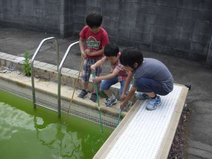 今日のヤゴ救助隊は,2年生と5年生でした。今年はプールの底の葉も少なく,ヤゴも少ないようでした。