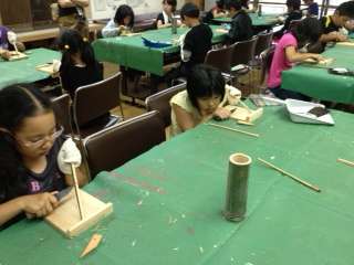 午後の活動は,竹はし作りでした。4泊5で使う箸をていねいに作りました。