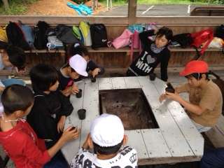 木を植える意義について学習した後,外の屋根の下で,ドングリ植えを行いました。一人一人カップにドングリを植えました。