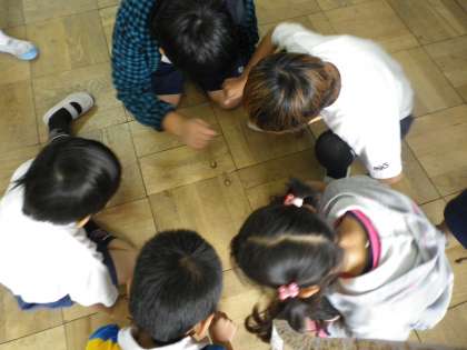 今日は生活科で,どんぐりごまを作りました。みんな,よく回っていましたね。楽しく競争する姿も見られました。