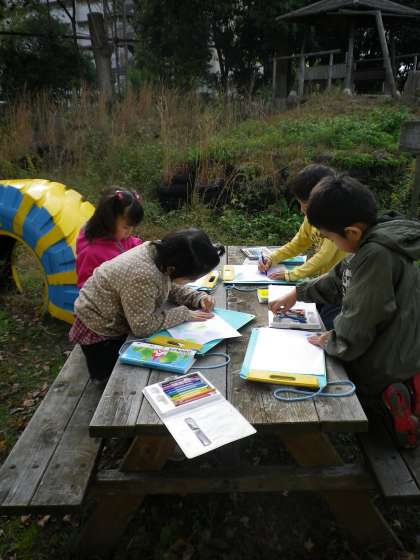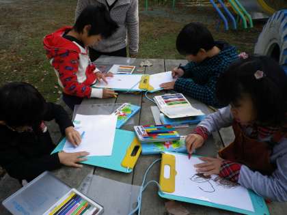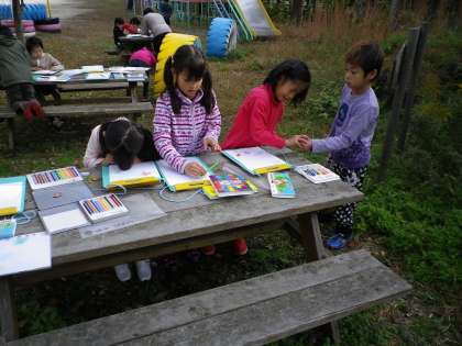 今日は,葉っぱのこすり出しをしました。葉っぱの形が出てくると「わあ,きれい。」と喜んでいました。秋を楽しんでいる1年生です。