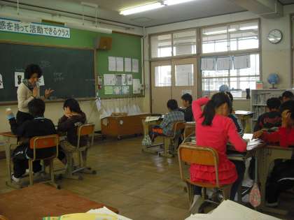 斉藤先生に来ていただいて,英語の学習をしました。「What's this?」を使ってクイズ作りに取り組みました。今日は先生の出された問題に答えて学習の見通しを持ちました。