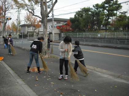3年生と外周路の落ち葉掃きをしました。