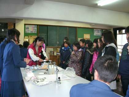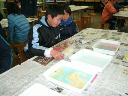 部活見学では,吹奏楽部のすばらしい演奏に圧倒され,サイエンスクラブではおいしいカルメ焼きの実演と試食があり,美術クラブではマーブリングをさせてもらいました。サッカーや野球クラブで先輩のたくましい動きを見学できました。