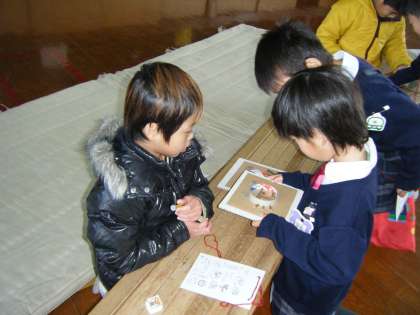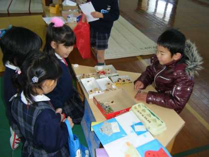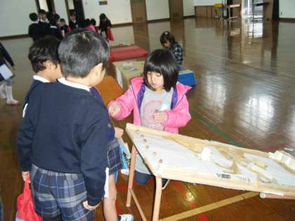 「木のみスーパー」は,はっぱや木のみで作ったおいしそうな商品がいっぱいです。「どんぐりあないれゲーム」は,丸い穴にどんぐりを入れていくと雪だるまやてんとう虫になります。「どんぐりころころ」は,どんぐりをころがして入ったところの点数によってプレゼントがもらえます。