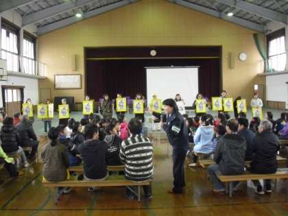 伏見警察署より交通安全のお話をしていただきました。交通標識合わせなど,楽しい活動も交え,楽しく学習を進めていただきました。DVDを観て,反射材の有効性について学習し,最後に反射材をいただきました。