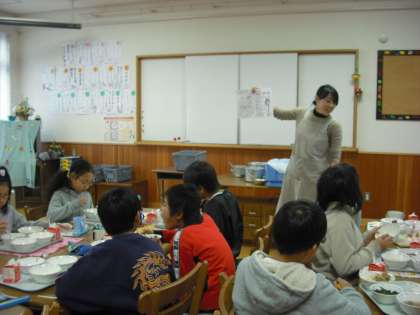 教室で学習した後は,ランチルームで給食をいただきました。