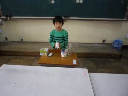 「おもしろいおと」「大きなおと」「ふしぎなおと」の発表です。「もう1回やってほしい」とアンコールの声も上がりました。楽しく学習できましたね。