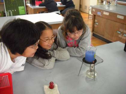 示温インクは約40度で反応を始めるので,あたたまるのに時間がかかりましたが,あたたまっていく場所がうすいピンク色ではっきり見ることができました。