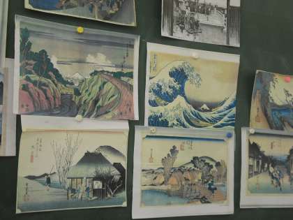 葛飾北斎の富士山や歌川広重の「東海道五十三次」の絵を写し版画に取り組んでいます。彫ることも難しかったですが,うまく色をのせていくことも大変根気がいる作業です。