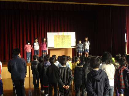 阪田寛夫さんの「冬の花」という詩を全校で読みました。冬の情景を想い起こす詩でした。