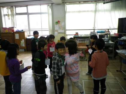 今日の3時間目は,楽しく英語の学習をしました。BINGOの歌を歌ったり,伝言ゲームをしたりしました。