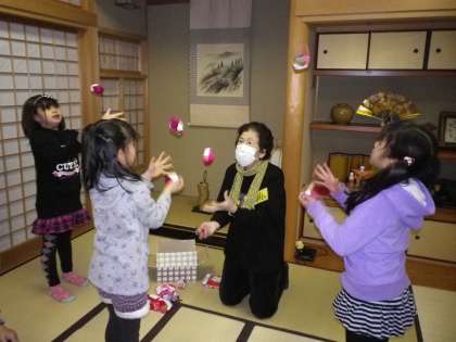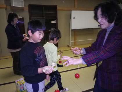 今日は,地域の方に昔あそびを教えていただきました。ふくわらい・けん玉・こま・ぼうずめくり・お手玉など,たくさんの遊びをお話をしながら楽しんでいました。すてきな時間をありがとうございました。