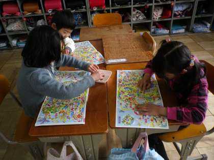 算数で100までの数を学習しています。今日は,すごろく遊びをしました。班のお友達となかよく楽しんでいました。