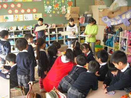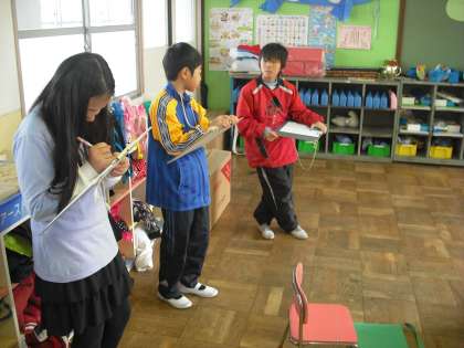 総合的な学習の時間に,さつき幼稚園に見学に行ってきました。同じ敷地で学習しているとはいえ,幼稚園に入るのは初めて。みんな緊張した表情をしていました。幼稚園の子どもたちの学習の様子や先生の声のかけ方など様々なことに気づき学習することができました。