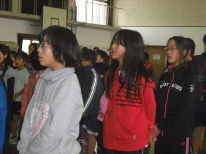 今日は朝会で「きみとぼくのラララ」を歌いました。fのフォルテ記号がついているところを意識して歌います。6年生の女子がとても声を出していました。男子も歌えています。全校78名がfを意識できていたり,高い音程もきれいに響かせていました。