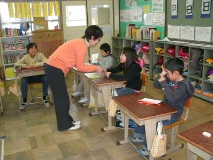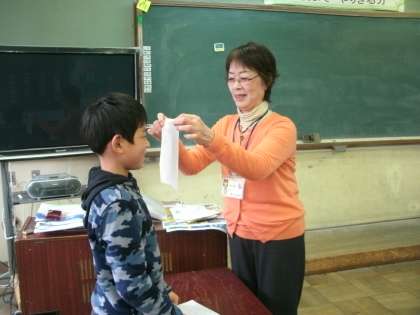 四方先生に英語活動の授業をしてもらいました。ティッシュをつかっての子音の練習をしてくださいましたが,ティッシュがゆれることに大喜び。日本語よりも英語は子音が強いですが,子ども達は上手に四方先生の発音を真似て発音していました。