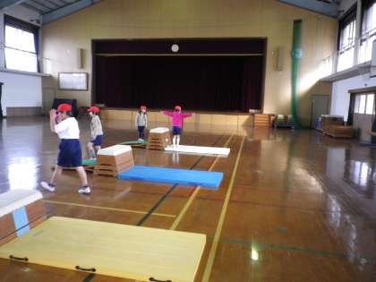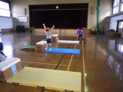 今日のとびばこあそびでは,着地でしっかり止まることもめあてにして取り組みました。かっこいい着地の人が,増えてきましたよ。