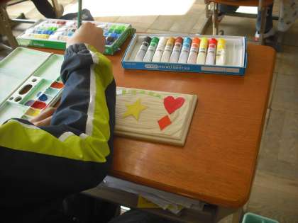 まだ彫っている人もいますが,色付けにほぼ入れました。工夫して色を考えているためかなかなか進みません。しかし,黙々と集中している時は,さすがに6年生だと思いました。