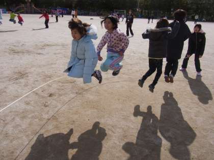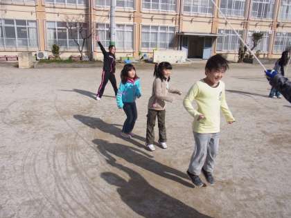 来週の大縄集会にむけて,なかよしグループで練習をしています。