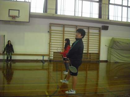 バドミントンは,4.5.6年生でやっているのですが,ラリーがなかなか続きません。10回続けるのも難しいことがあります。相手がとりやすいように打つ練習から,うまく力を加減してシャトルをコントロールしてほしいのです。試合をすると女子がよく続けてくれます。4年生も上手です。