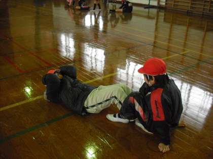 体育館で チームごとに 練習メニューを完成させました。