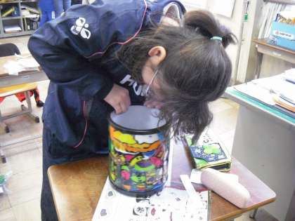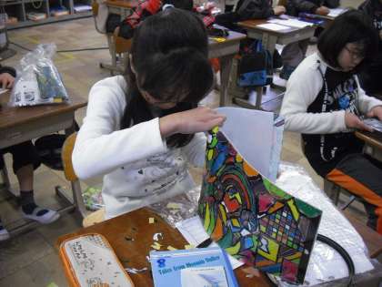 苦労して 切り抜き 色をつけたステンドボックス。